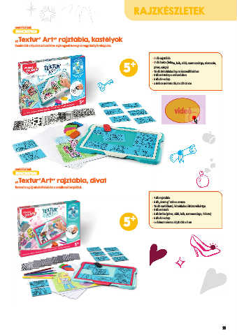 • 5 db kréta (piros, zöld, kék, narancssárga, fekete)
