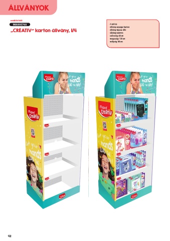 ÁLLVÁNYOK rendelési kód: IMA995760 • 4-polcos • állvány anyaga: karton „CREATIV” karton állvány, 1/4 • állvány típusa: álló • állvány mérete: szélesség: 60 cm magasság: 150 cm mélység: 40 cm 42